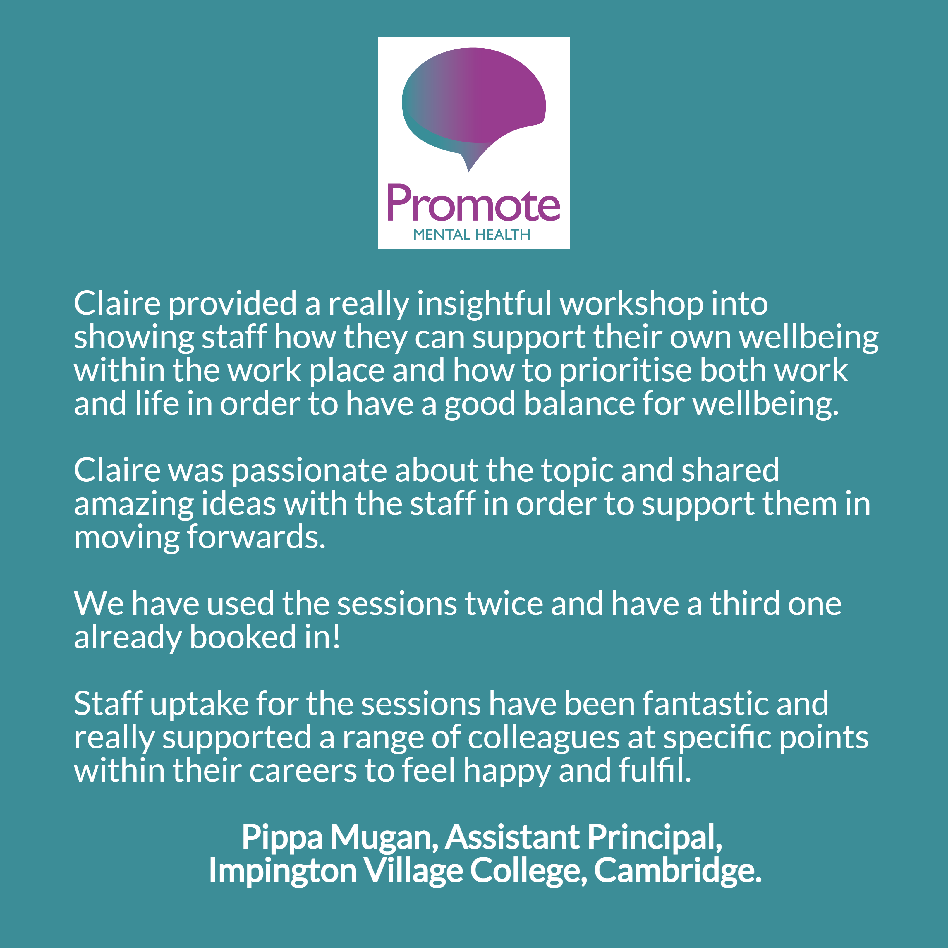 For further information on what we can offer contact me at claire@promotementalhealth.com
